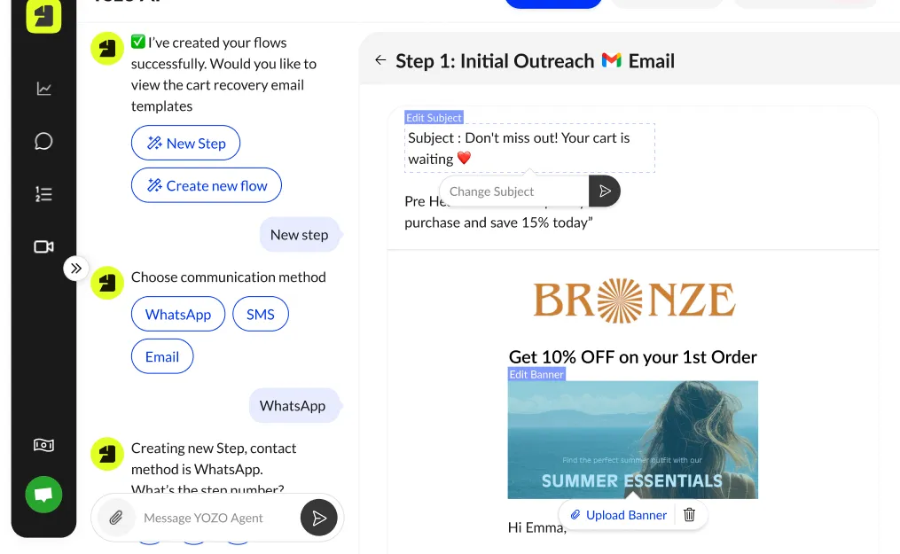 Yozo can replace an agency for many tasks (like flows, campaigns, and content creation). But if you already work with a team, Yozo can supercharge them, saving time, reducing costs, and letting them focus on strategy while Yozo handles the heavy lifting.